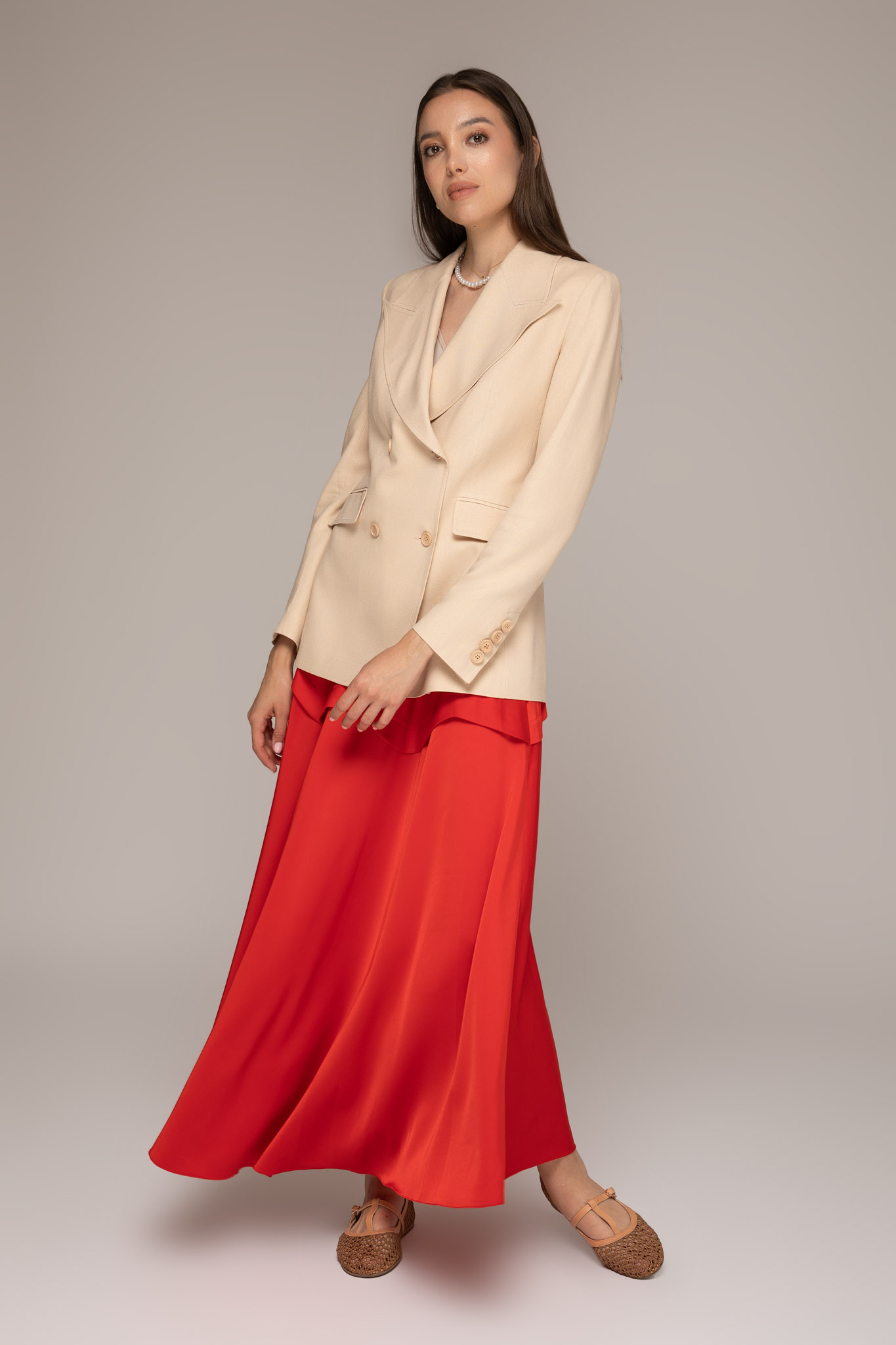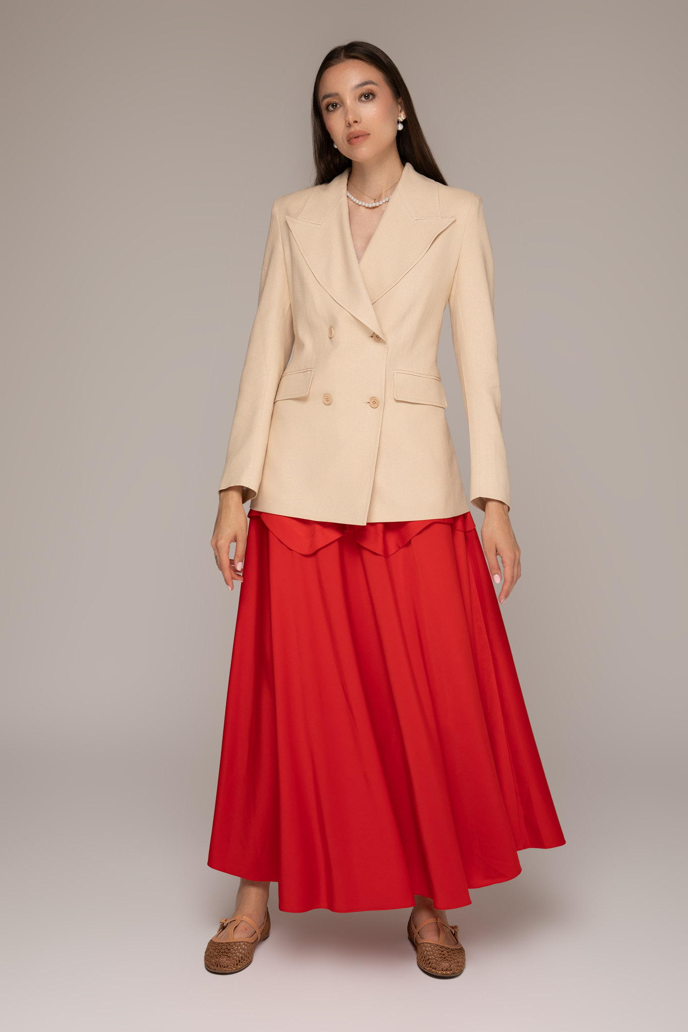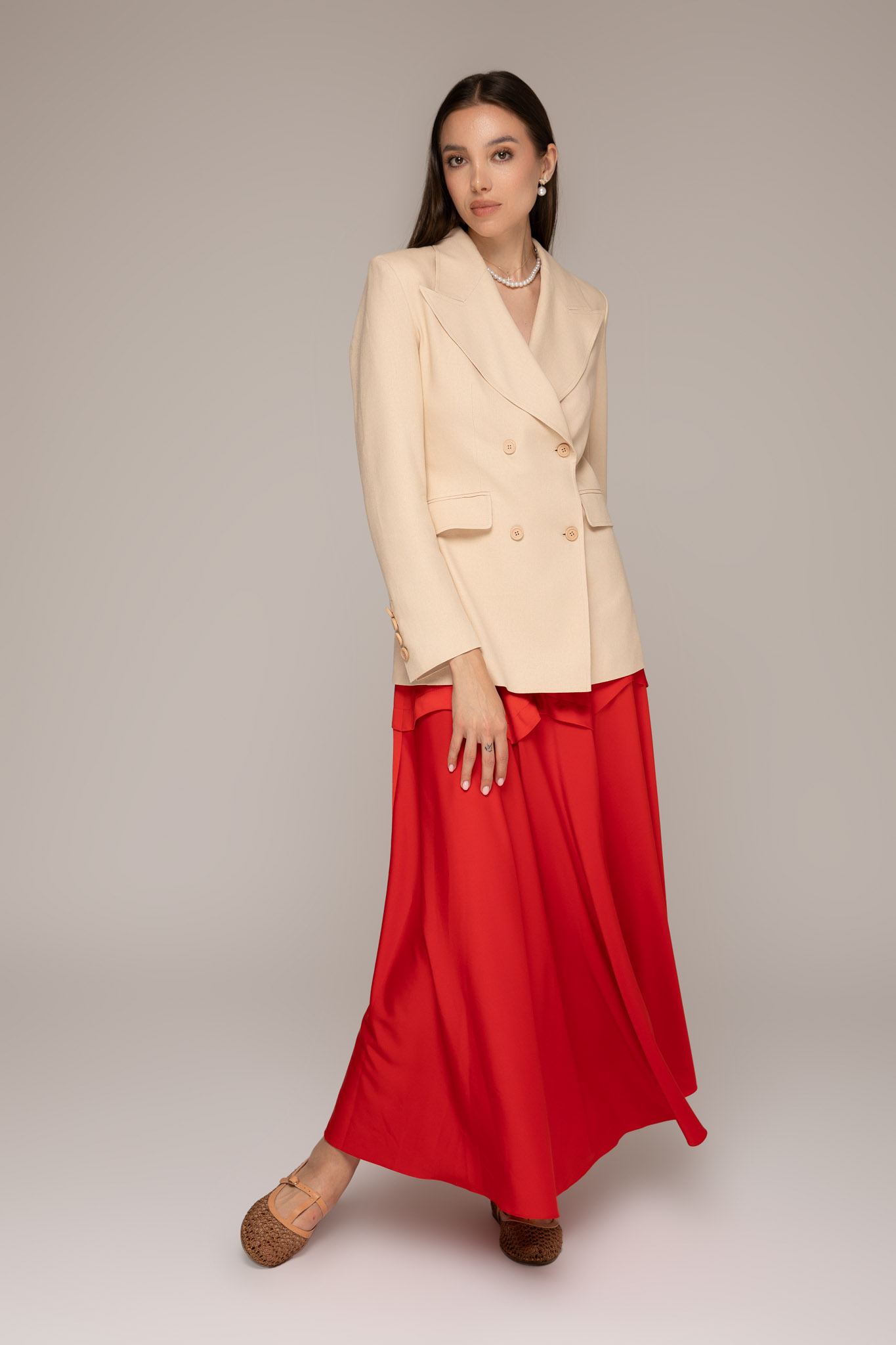 Sacou lung cu rever nude